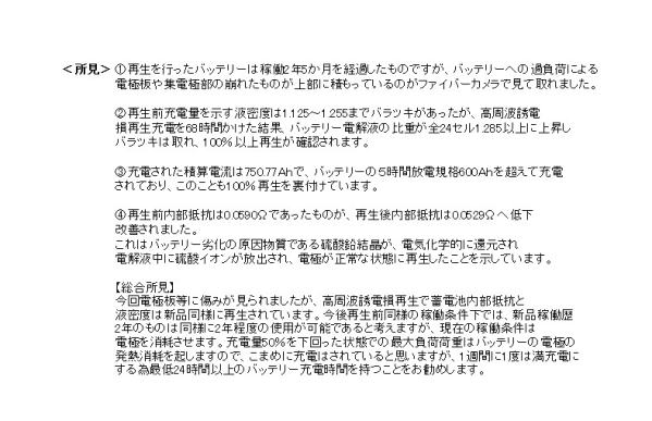 (※)再生バッテリーは、使用不能となった劣化バッテリーを当社の再生充電器で再生したものです。